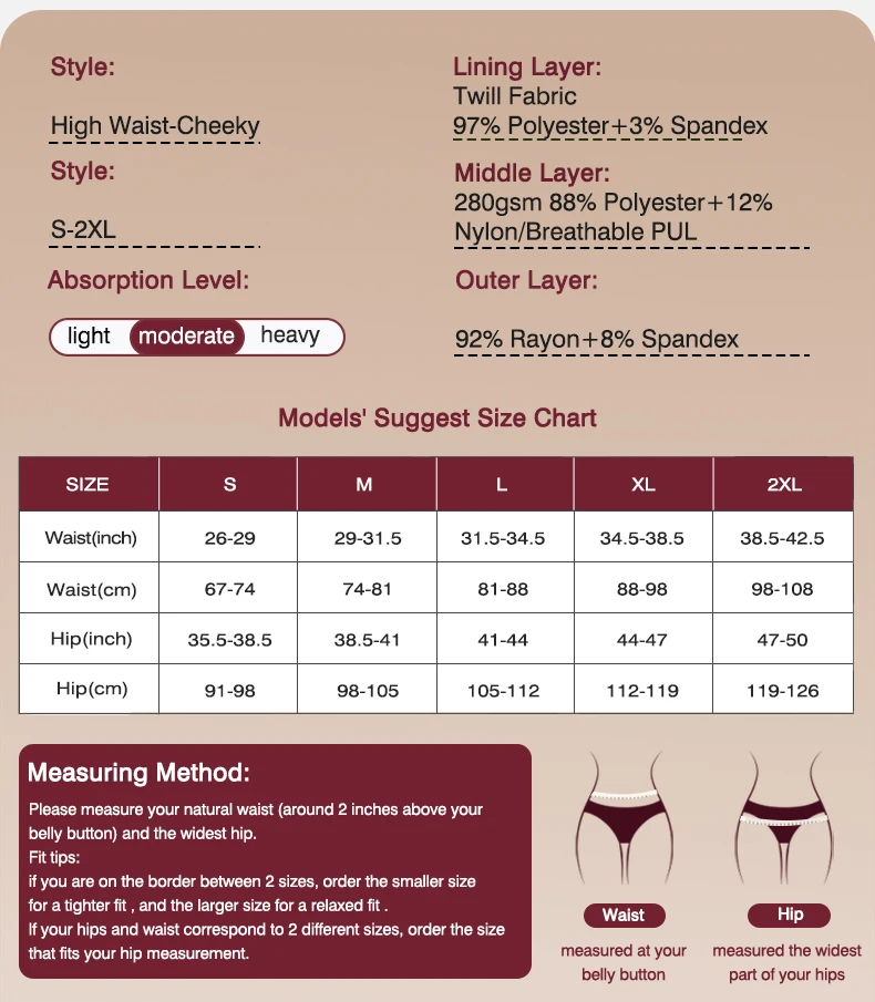 Product Uses: Menstrual cycle, Postpartum, Minor incontinence, Maternity, Daliy Wearing