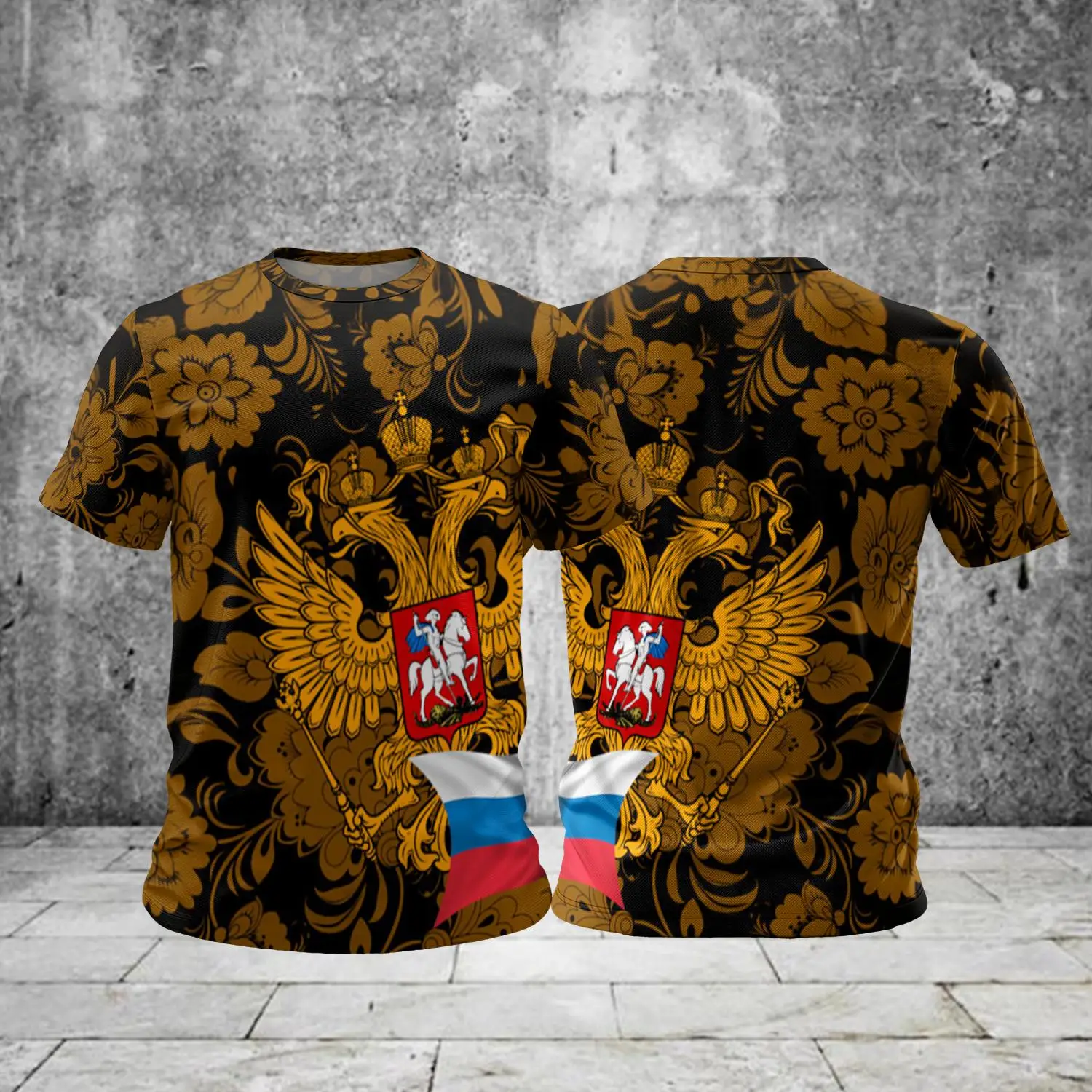 style7: men's oversize round neck t-shirt with russian flag