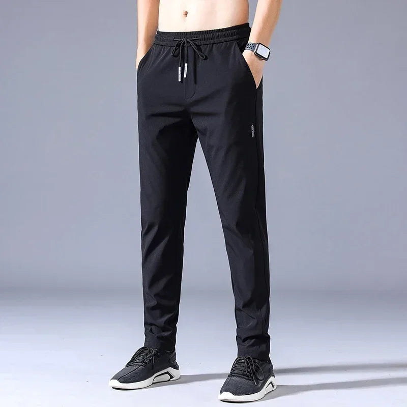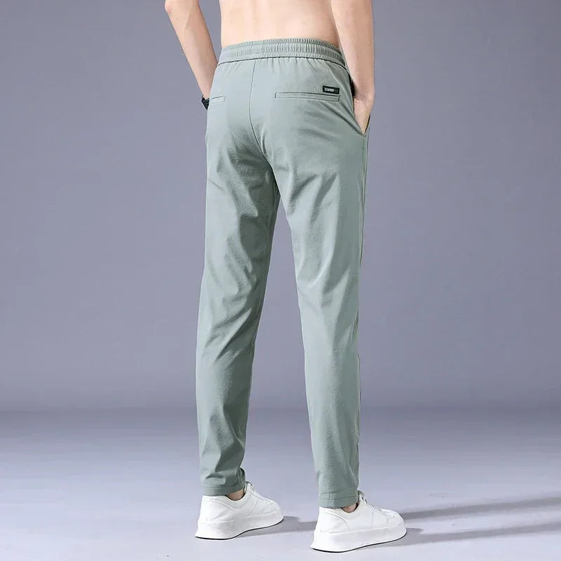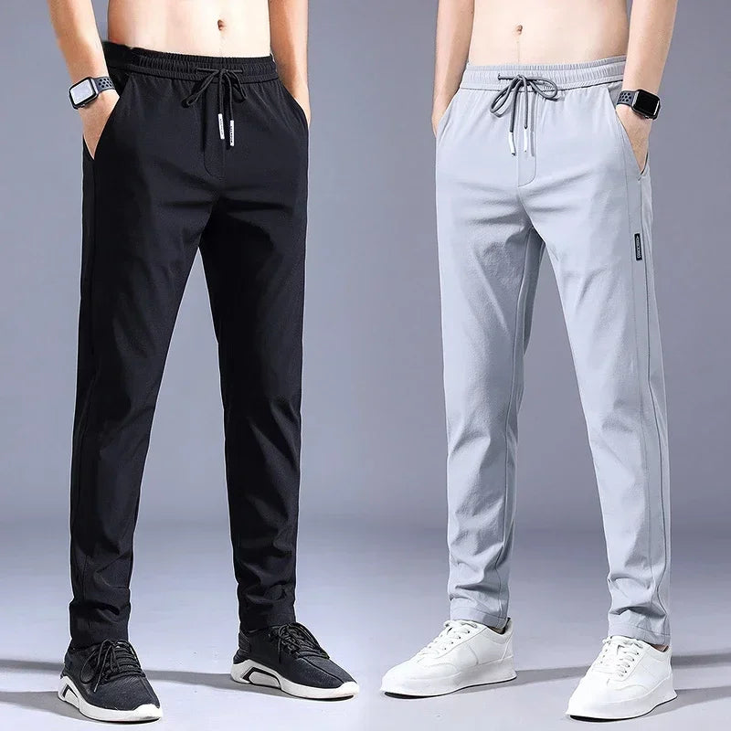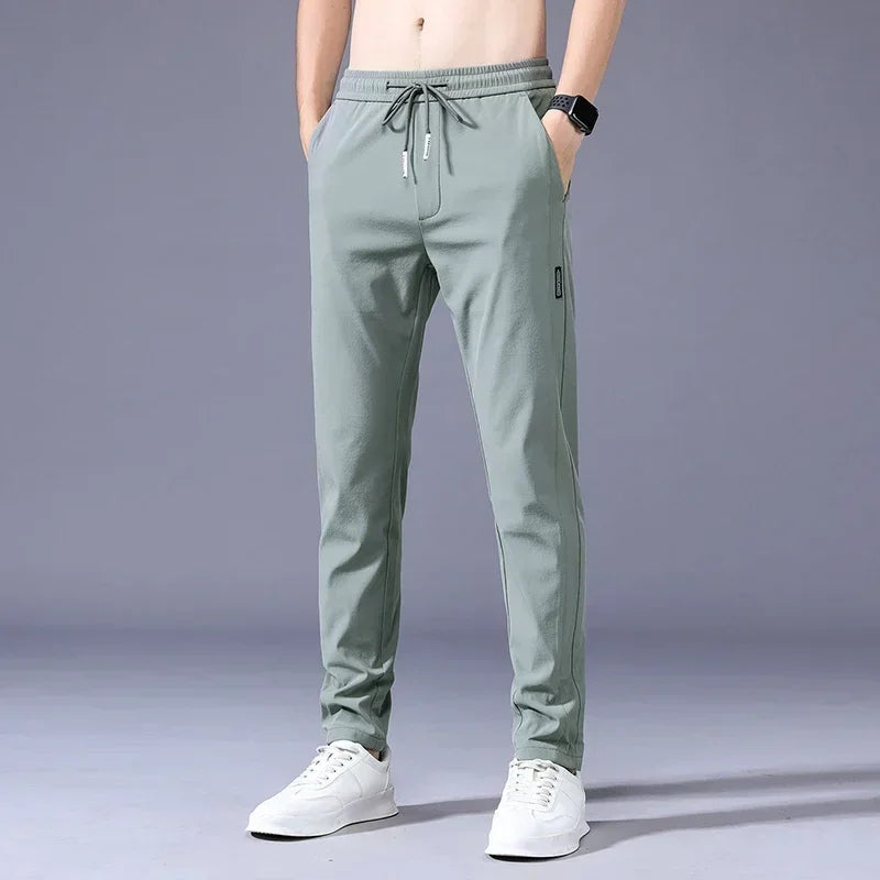 Sommerliche Herren-Freizeithose, dünn, weich, elastisch, Schnürbund, einfarbig, Taschenapplikationen, Korea-Stil, Grau/Schwarz, Arbeitshose für Herren