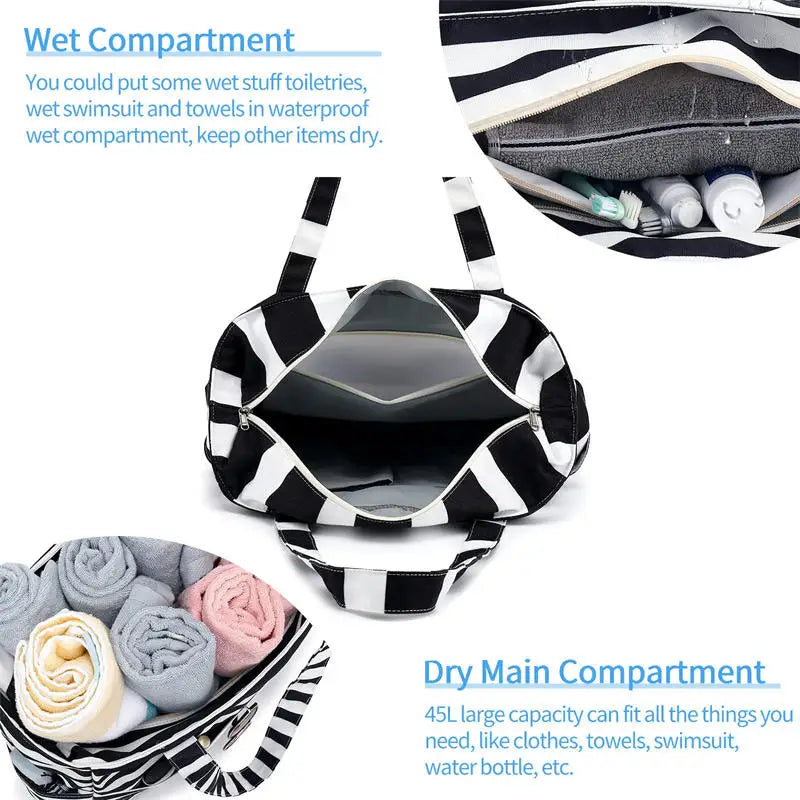 תיק חוף לנשים תיק נסיעות מתקפל עם כיס נגד חול תיק אחסון קל משקל לחדר כושר/קניות ניתן לאריזת יד