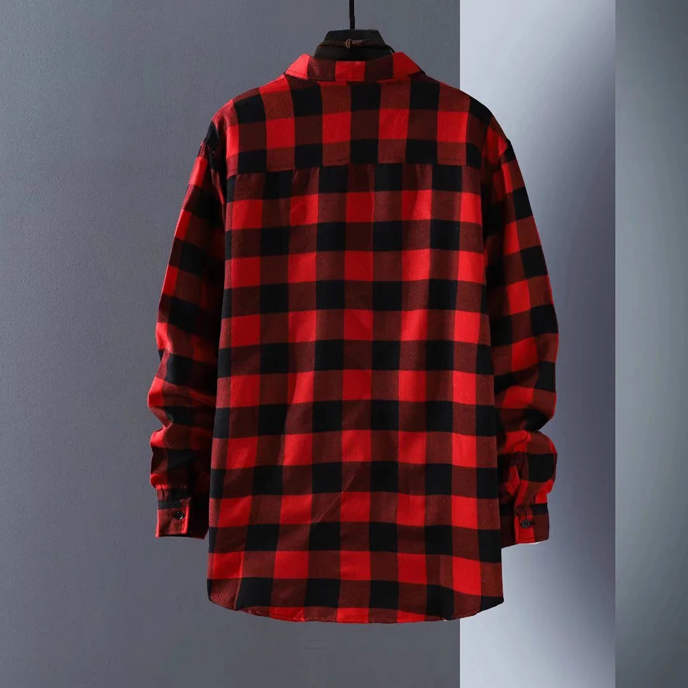 * מאפייני פריט: גברים, קז'ואל, אופנה, חולצות משובצות ארוכות שרוולים מכופתרות, מעיל רחב, חולצות עם דש