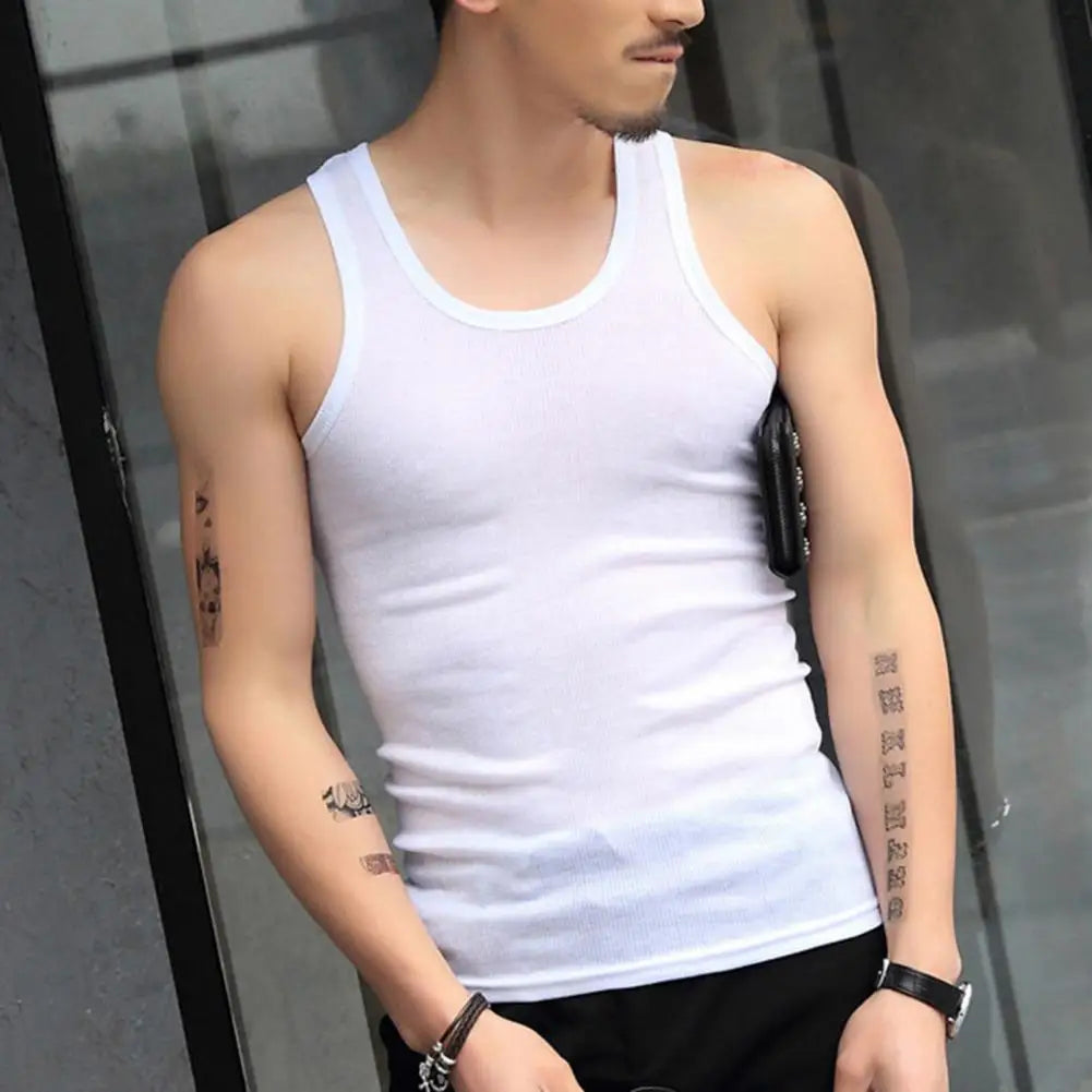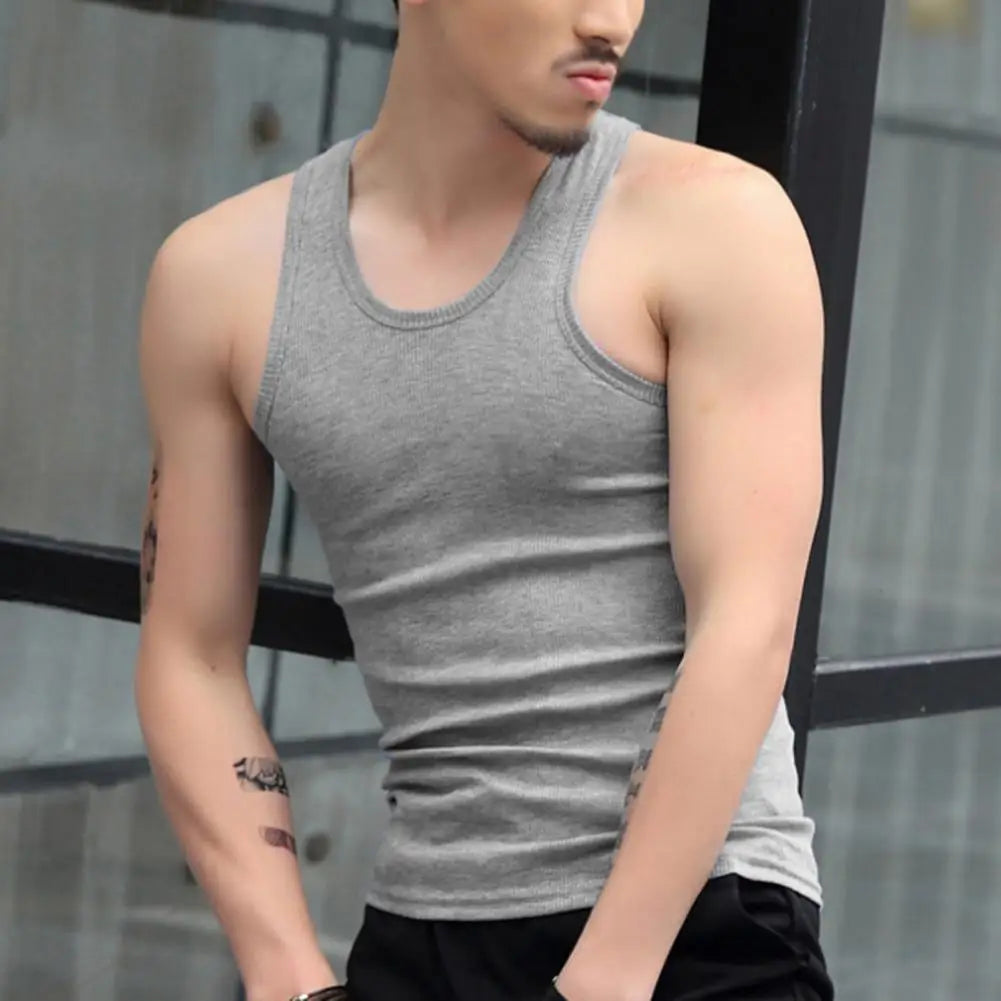 Men O-neck Sleeveless Tank Tops Solid Color Slim Fit Fitness Gym Workout Undershirt Bodybuilding Running Vest