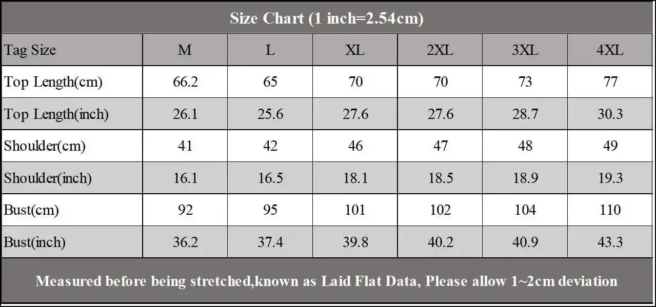 *Tag Size:M-4XL, please make sure that these actual measurements will fit you.